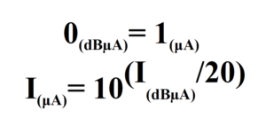 Figure 1: To convert a current in dBμA to its value in μA the reverse logarithmic needs to be used.